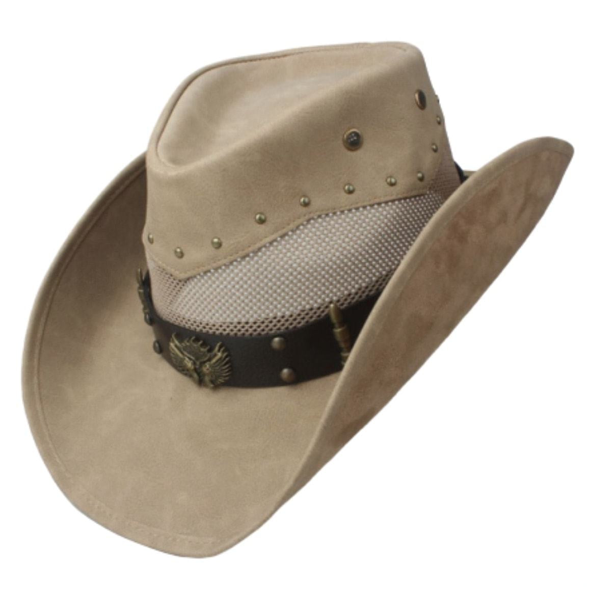This cowboy hat is made from high-quality leather, making it suitable for warm weather. Its unique design blends modernity with traditional Western style.