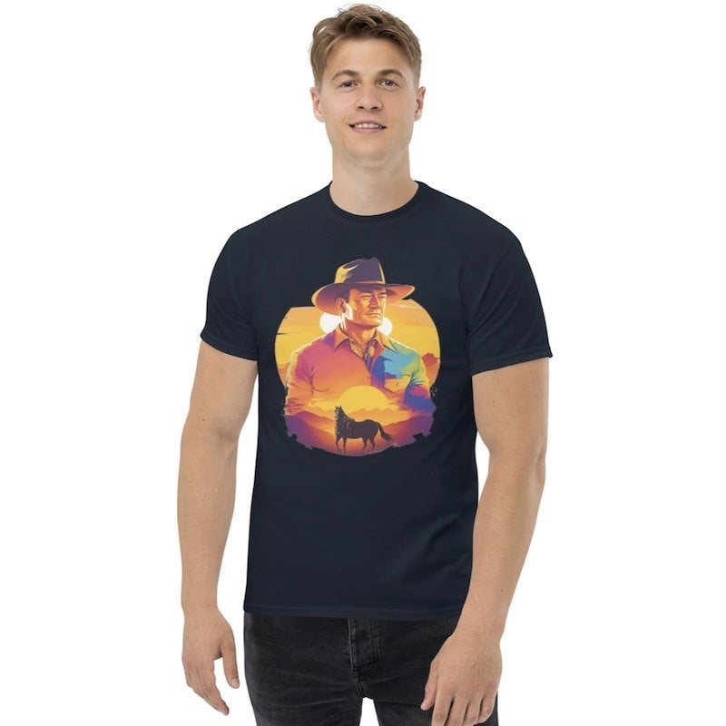 This t-shirt is made from high-quality cotton, ensuring comfort and durability. It features a striking design that embodies the spirit of the Wild West.