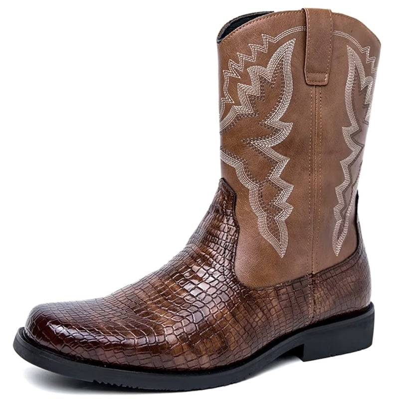 Leather Cowboy Ankle Boots for Men