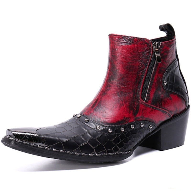 These cowboy-style boots for men are handcrafted from high-quality genuine leather, showcasing distinctive country-western patterns.